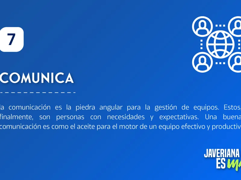 A su vez, David Rojas, Gerente de proyectos, consultor TI, y egresado de la Maestría en Administración de Empresas de la Javeriana Cali, considera fundamental tener en cuenta siete aspectos que todo líder debe saber a la hora de gestionar los equipos de trabajo, y que presentamos a continuación.